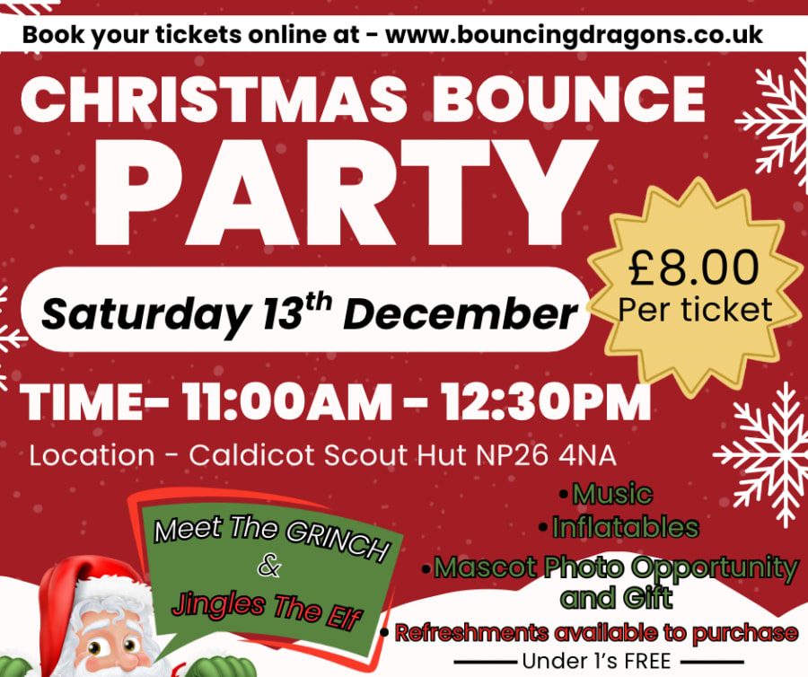 Visit www.BouncingDragons.co.uk to book your place at our Christmas Party today! Contact Us on 01291 440605 if you have any questions.